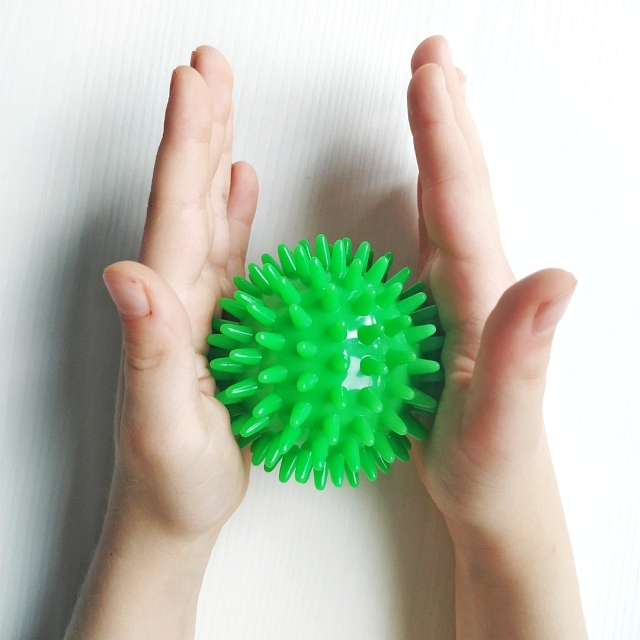 Masážní míček lze využívat různými způsoby. Nejběžnějším je masáž dlaní a prstů. Důležité je vybrat míček tak, aby dítěti dobře padl do ruky.